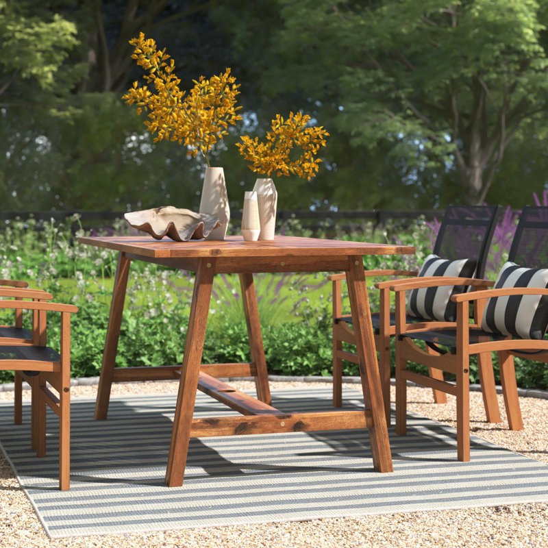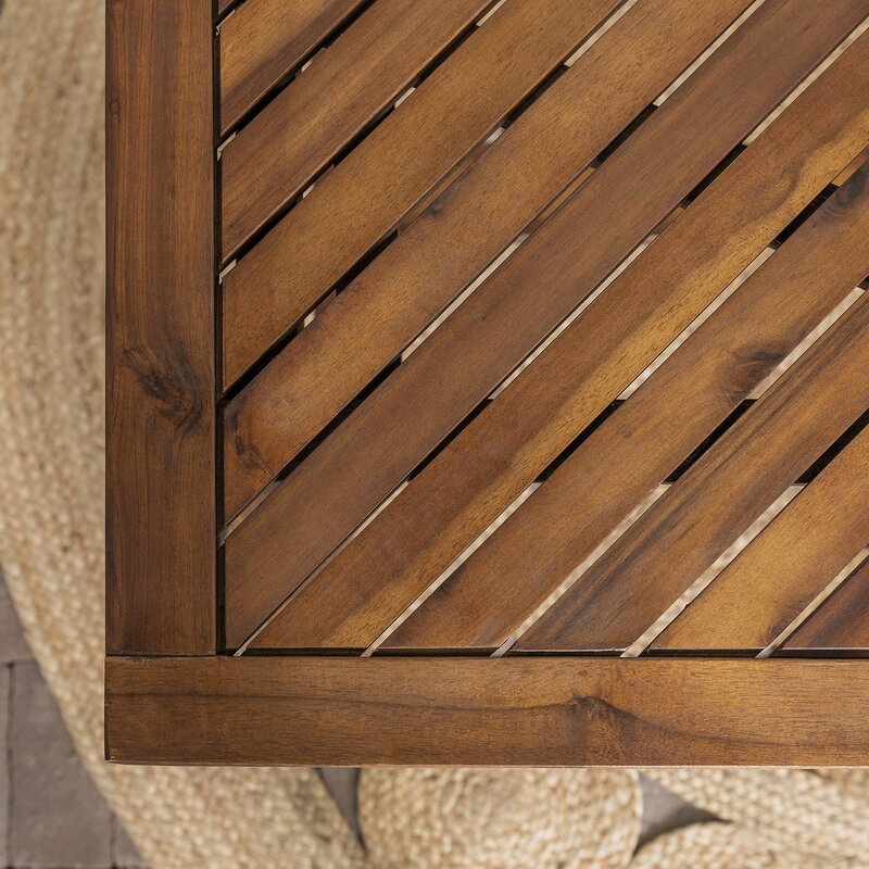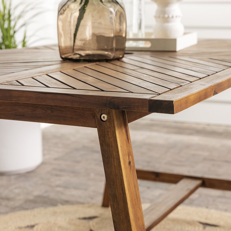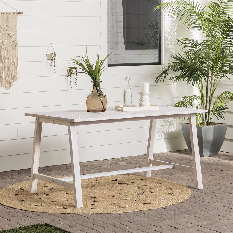 Designed to sit outdoors, this dining table adds instant charm to any space, indoors or out. Chevron detailing adorns the tabletop for a touch of cottage flair. An umbrella hole rests at the center, offering space to add a little extra shade on sunny days. Since this table comfortably seats four, it’s great for families or small get-togethers. Stage it as a patio table, lawn table, pool-side table, cocktail table, or indoor dining table, and relax in your new picturesque picnic spot.