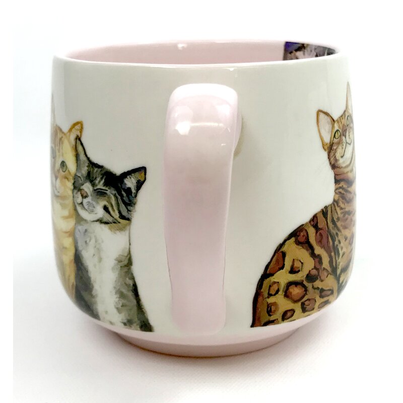 The kitties are now my friends. Love their personalities. The cups are a beautiful color and shaded delightfully. Every sip from my cup is now made purrrrrrrfect!!