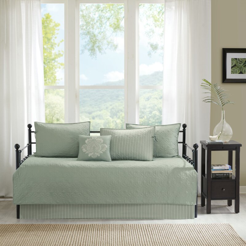 The Twillery co.â„¢ Lissette 6-pieces reversible daybed cover set offers a charming cottage-inspired update to your guest bedroom. The daybed cover and shams flaunt a classic stitch pattern that creates a rich depth and texture on the face of the bedding set. A square decorative pillow with an elegant embroidery bed skirt adds the finishing touches to the daybed set. This daybed cover also has an antimicrobial treatment that provides built-in freshness protection, reducing the growth of odor-causing bacteria to keep the fabric lasting longer.
