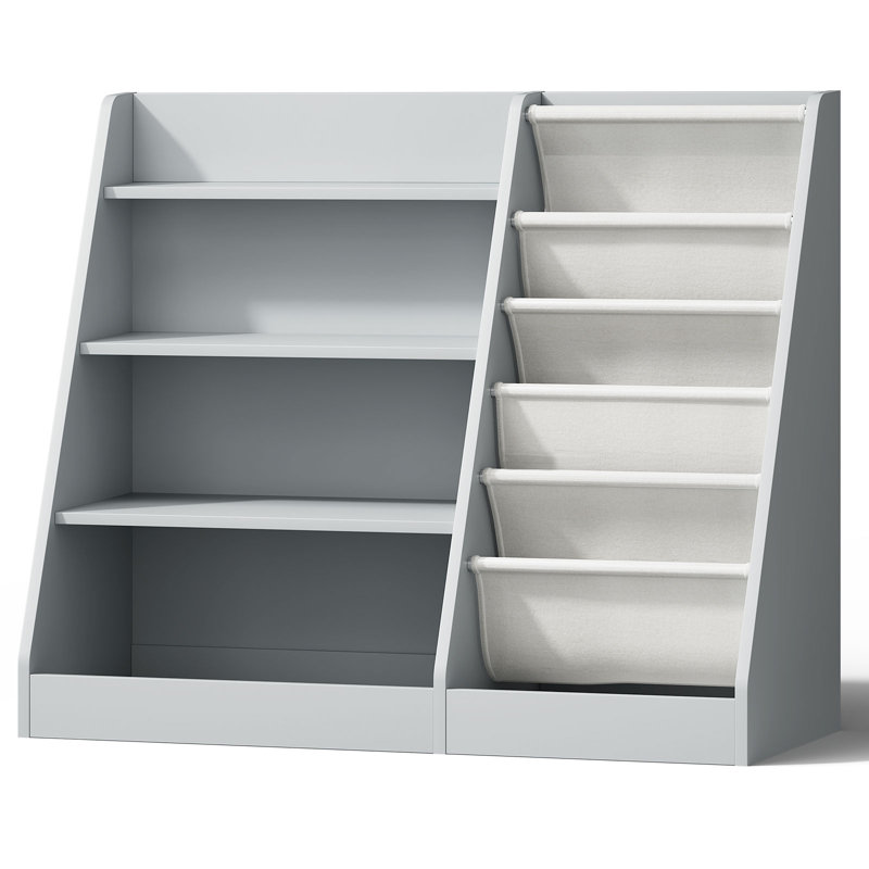Features five horizontal bookracks and four square shelfs, perfect for displaying and storing books, games, puzzles, and toys all in one place.