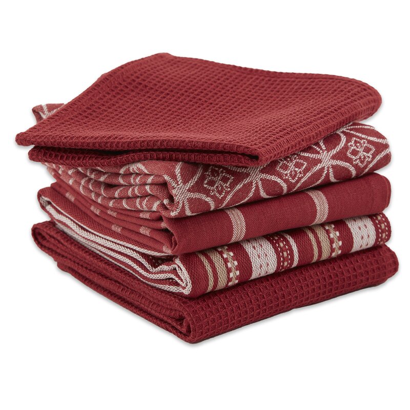 I like this a lot but primarily because of the two towels I like best (see photos). I will also use two others (the plaid one and the solid one) in the set, but am not as excited about them. The fifth item in the set is a small thing, like you would use it for washing dishes, but I don’t use this kind of thing for washing dishes so it’s a little useless for me. But like I said, I like the main two a lot. And all four of the ones I like are an excellent size for what I want them for.