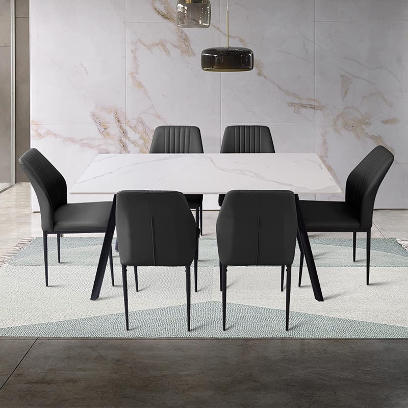 Contemporary flair and sleek style to any space of your home with this elegant dining table set. Our dining table is set with exquisite stitches and premium fiber-reinforced leather that will sturdy structures. The table top has enough hardness and thickness, the metal frame and feet are very stable and the load-bearing can reach 300 pounds. Dining table set brimming with modern inspiration, this design effortlessly elevates your aesthetic with unexpected elegance.