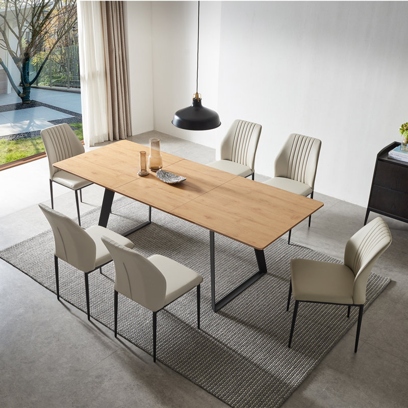 Zerifevni is committed to developing and creating inspired products, aesthetic furniture that can bring you and your family a good mood and create a warm family atmosphere, With 20 years of furniture manufacturing experience, So far there are more than 200 appearance patents. 7-Piece Dining Table Set, MDF Tabletop Stretchable Dining Table with 6 Dining Chairs Include: *1 modern triamine board dining table *Saving Space:Dining table with four legs has enough space for dining chairs and feet, saving space *Cross-shaped feet, good-looking and stable *Table Shape: rectangular table top *Table Color: Oak color Stretchable desktop, before stretching:63″, after stretching:87″. Table Usage Scene: indoor (dining table, desk Table, makeup table, coffee table) Tips: 1. Due to manual measurement, there may be slight deviations in the size of the table set 2. The color of the table set shows a little deviation under different lights and displays, but it will not be very different