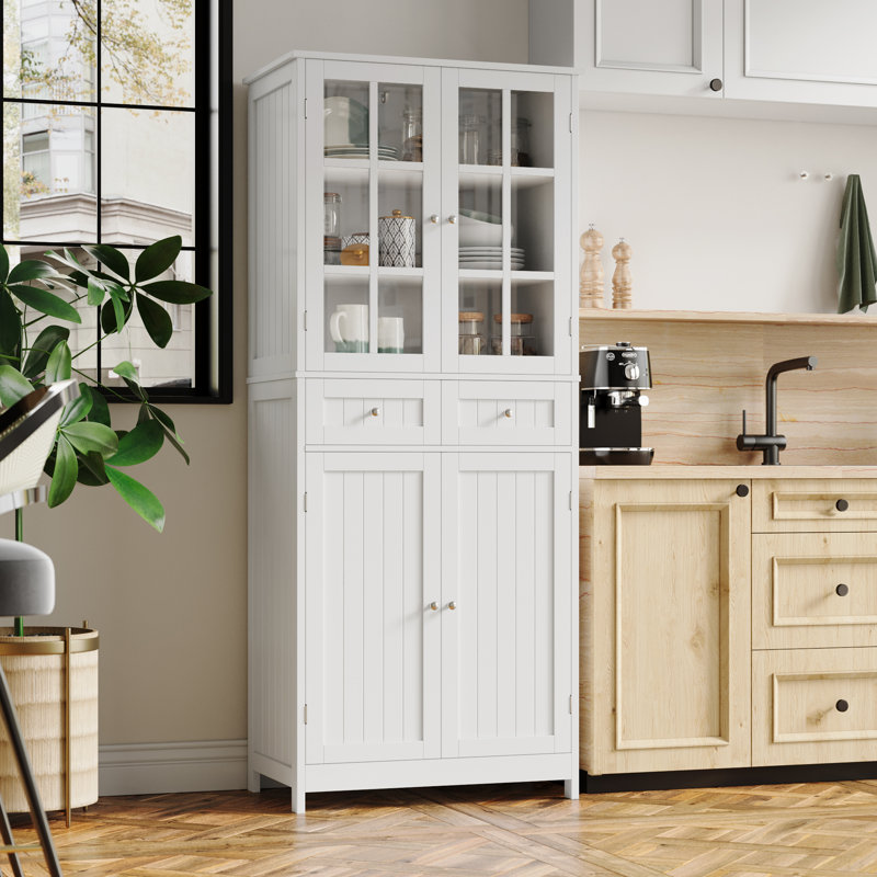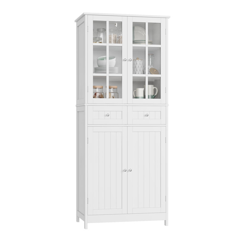 Increase the storage potential of your kitchen with this versatile pantry cabinet. Designed in a sleek style, it can fit in your kitchen, living room, or bathroom. This cupboard features 2 cabinets and 2 drawers for versatile storage. The tempered glass doors make it convenient to identify your items. Just add this sideboard to enhance style and convenience with elegance.