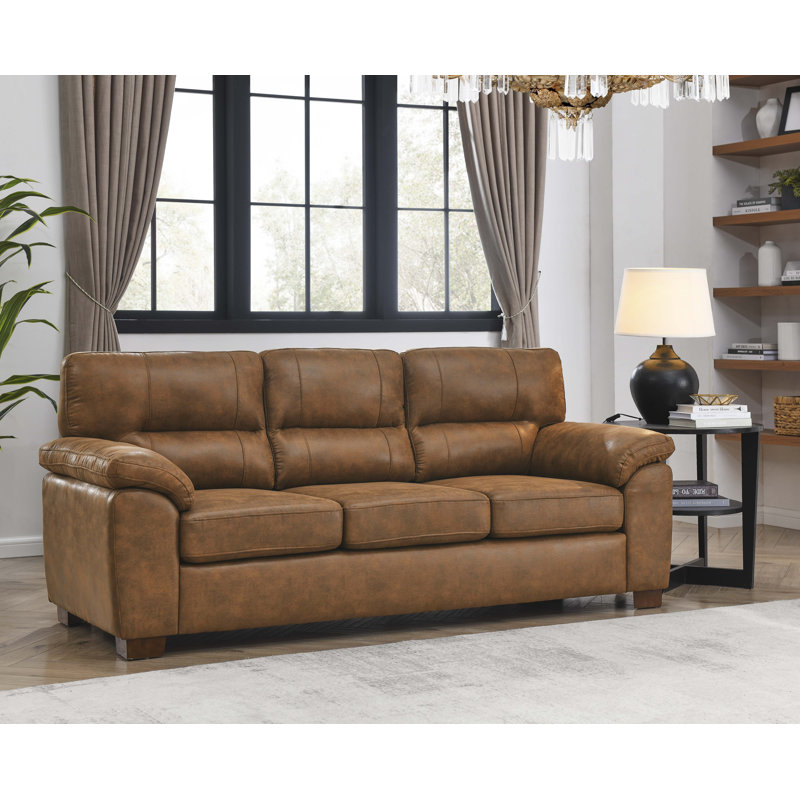 I was hesitant to purchase this sofa but it looks great and for faux leather, it looks and feels like real leather and it seems comfortable.Here’s hoping it will continue looking like this after grandkids start using it.