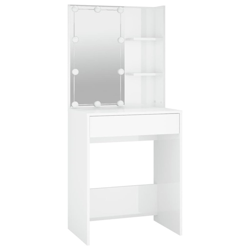 High gloss white dressing table with LED. Featuring refined straight lines and an asymmetrical shape brimming with uniqueness, this dressing table is sure to turn heads