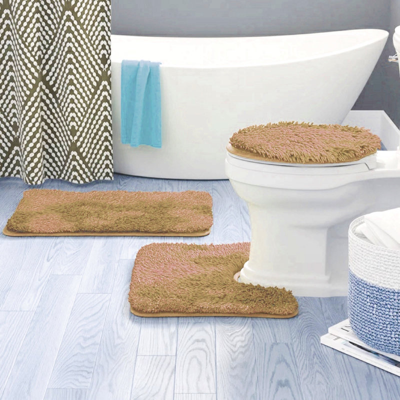 The scene in your bathroom ensemble with this stylish bath rug set as your base. Crafted from polyester, each piece showcases a shag design awash in a solid finish and is ready to bring some dimension, color, and comfort to different sections of your washroom. Plus, each piece features an anti-slip rubber backing for added safety when getting out of the shower. Includes one bath rug, toilet seat cover, and contour mat.