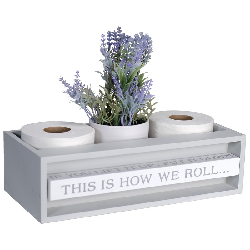 Spin Quotes add an element of fun to everyday objects. Designed with not only bathroom humor but also function in mind, this bathroom storage box is constructed of sturdy MDF wood handcrafted with a textured wood grain surface. The long, single compartment makes it easy to have bathroom essentials on hand and readily available. Gently spin the quote bar to reveal different sayings. This organizer features the phrase- es: “This is how we roll…â€, “If it runs out…replace itâ€, “Please…seat yourself†and “If you lift it up…put it downâ€. The horizontal freestanding design makes it ideal for a countertop display. The Spin Quotes collection brings out the child in all of us with its fun and interactive designs. Entertain yourself and your guests with Latitude Run® International Designs’ bathroom storage box. Measurements are 14.2 inches (W) x 4 inches (H) x 6.6 inches (D).