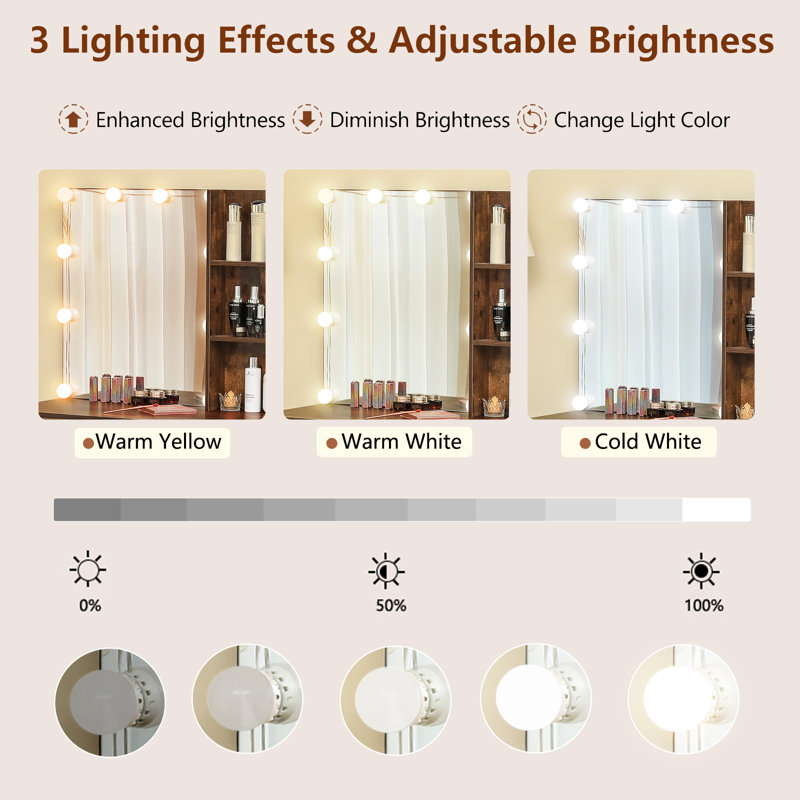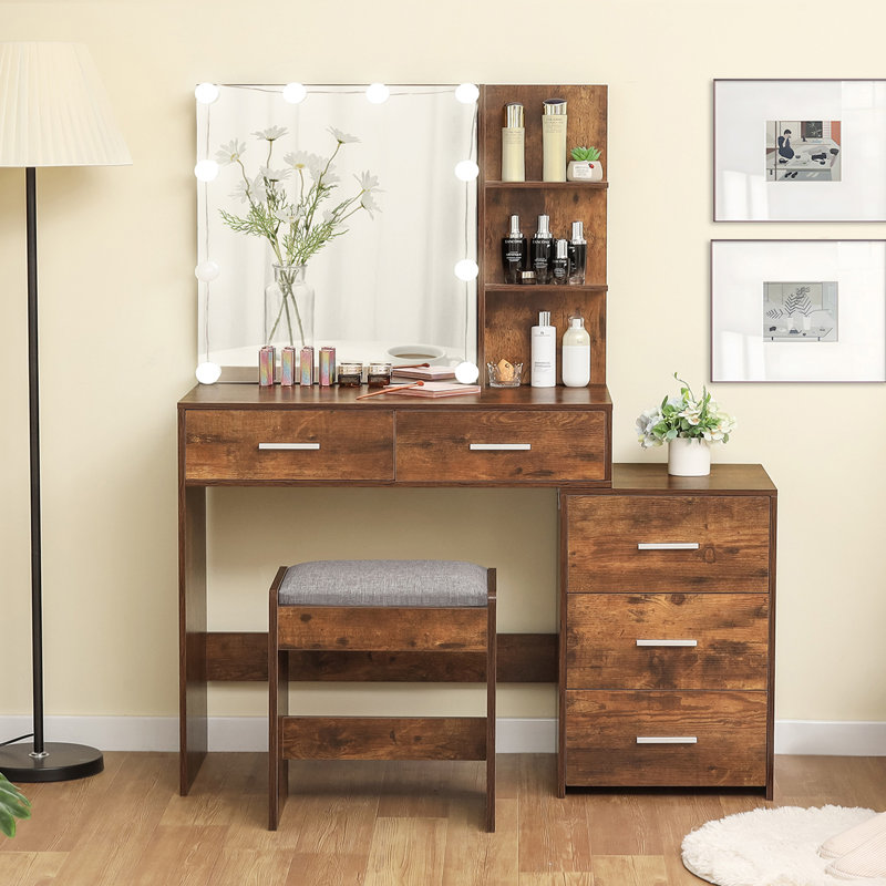 Powerful Storage Capacity: Too many cosmetics? Latitude Run vanity set will save you from the mess. 3-Drawer Chest, 2 big drawers, spacious tabletop, and 4 storage shelves, Wow! What a powerful makeup table. Plenty of room for all your creams and makeup, outside shelves for taller bottles and you will love all the drawers and the versatility of the cabinet. Allowing all of your beauty supplies tidy in one place.