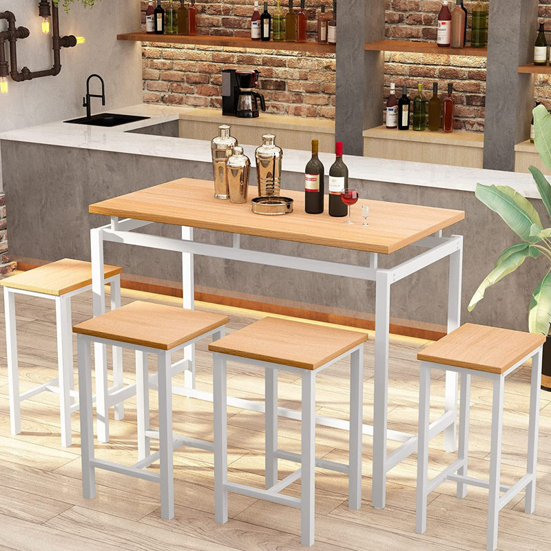 Modern 5-Piece Dining Table Set – Our dining set for 4 people includes 1 dining table and 4 matching stools. This counter-height dining table set can be used as an indoor bistro table set, dining table, coffee table, breakfast table, or kitchen bar table.