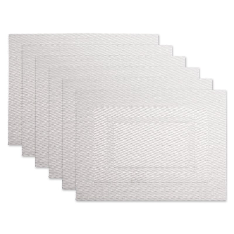 These place mats are a great reliable purchase.As they are vinyl spills and food stains are super easy to clean.Each one has a sticker you need to remove from the back but that didn’t bother me.You can’t go wrong with a simple, clean white place mat.