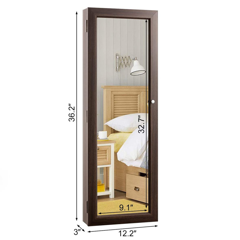 Stylish and well-made armoire: The jewelry armoire is constructed with durable PS material and can be mounted on the wall with screws or hung over the door with hooks,3 adjustable heights are available, both space-saving ways.