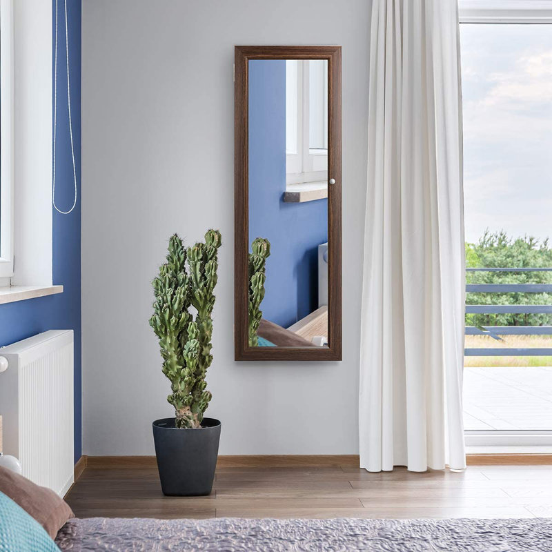 The jewelry box mirror is very nice. It came quickly and was almost all put together. We only had to attached the hooks. The hooks are thinner than expected and hopefully will be durable to hold this up. The mirror ie not really full length. It is only about 3ft long. However, it does have space and a place for many items. Overall, happy with the item.