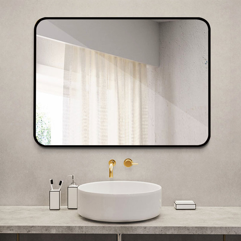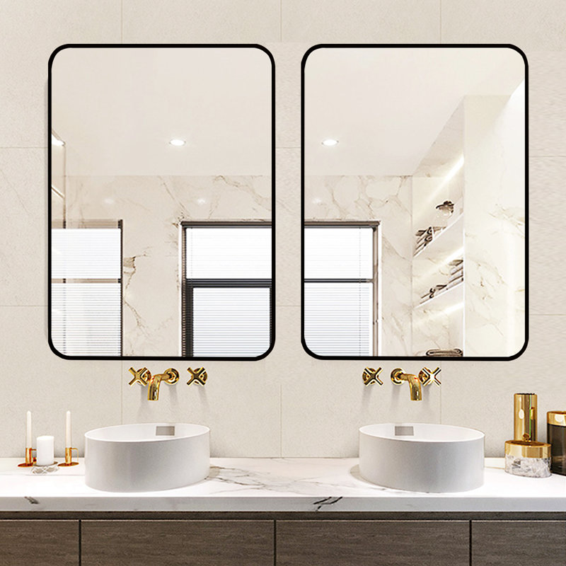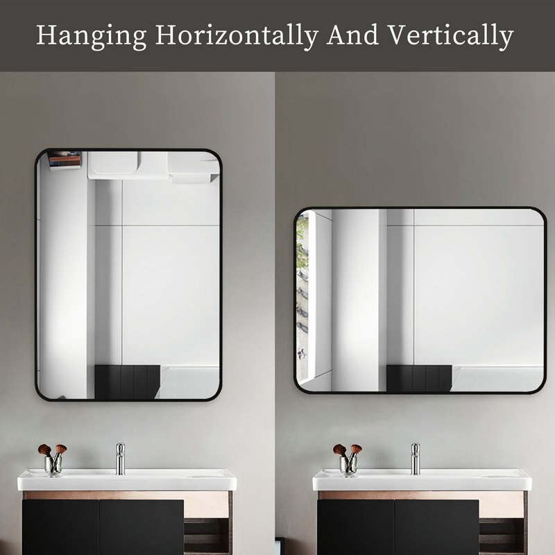 PREMIUM MATERIAL: Rectangular Wall Mirror is made of real HD glass and will not distort the image from any angle. Our fully sealed metal frame and simple design make the mirror waterproof, shockproof, more stable and have a longer lifespan. Rounded corner design to ensure safe use at home.