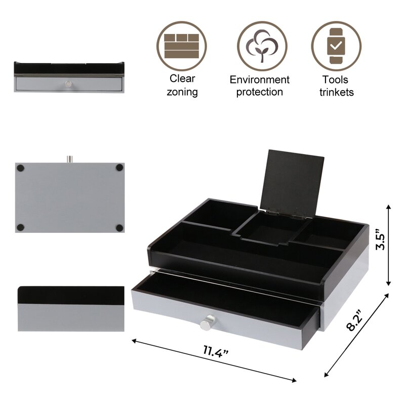 Organize the perfect day: 5 Individual compartments are provided to store everything from cufflinks to keys, watches to tie clips. Use it as a watch organizer or for electronics. Our valet trays can hold everything. Have everything you need to conquer the day, neatly organized and ready to go.
