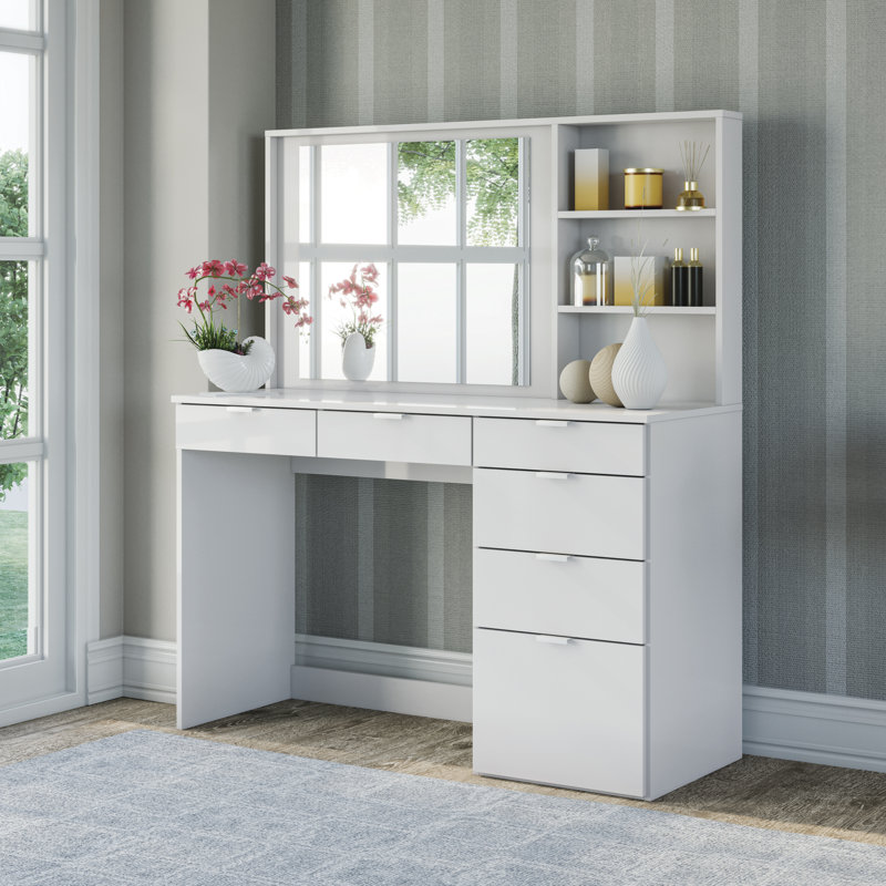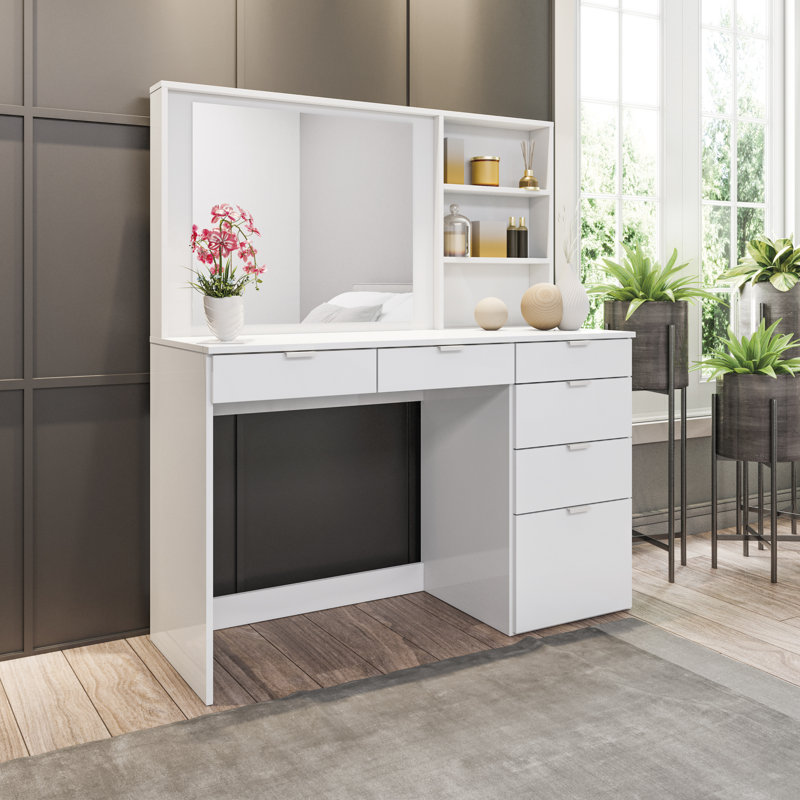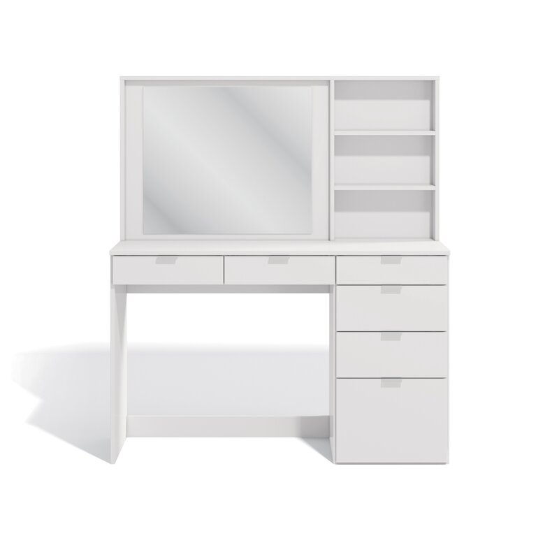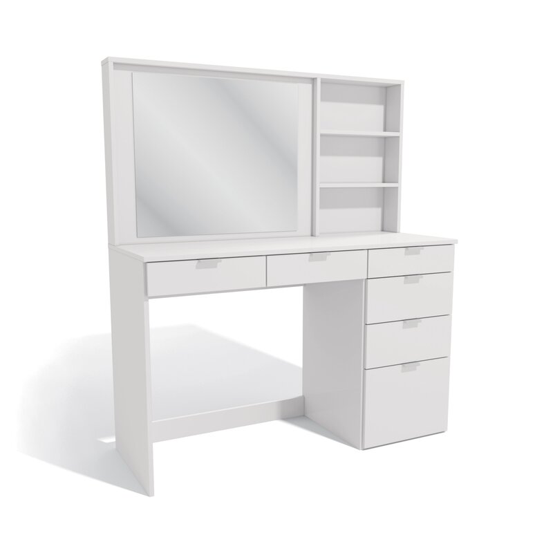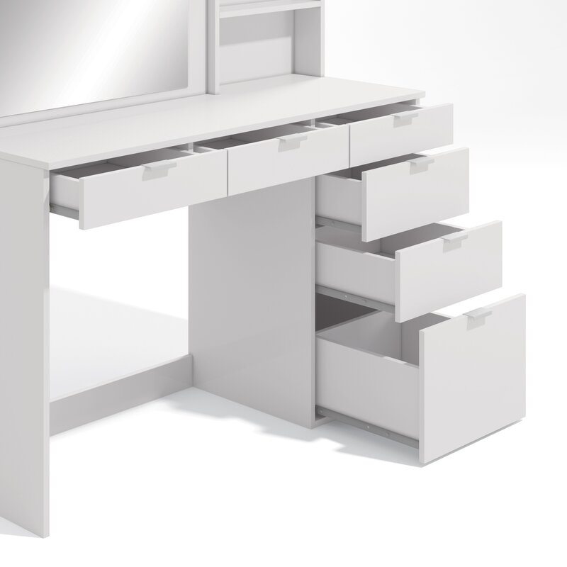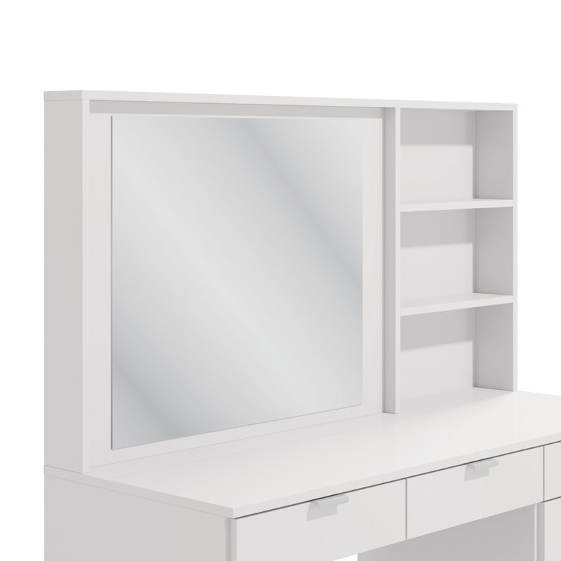 The mecca of beauty has arrived at your fingertips, this dressing table truly is storage galore. With 6, yes six drawers in 3 different sizes, you really can’t get any better. Oh, but out design team was not done just yet. We know storage is key, so just to add more, we added 3 storage niches next to the mirror to keep everything close by. This vanity/makeup set makes it super convenient to access all your favorite pieces and products in one neatly organized place. A dream come true when it comes to this Dressing Table with a Wide mirror and large countertop space. This vanity was designed specifically with you in mind to cover all the different needs that may be needed. From an extra tall drawer for taller hair products to an extra-long drawer for longer brushes. This truly is the flagship vanity of vanities. Beauty, space, and sophistication all meet here and comes direct to your door. Full Assembly is required, and the use of a battery powered drill is recommend for ease of assembly. Dimension for your new dresser is 54.3†H x 47.24†W x 17.7†D. Tip-over hardware is included with this item