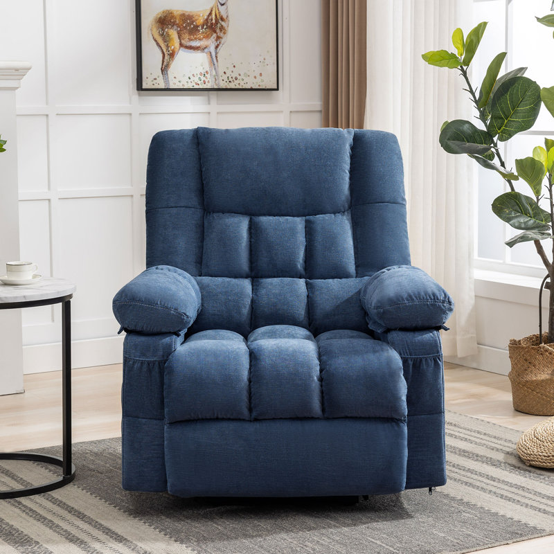 My mom bought this recliner for my house for when she comes to visit. I also bought a sofa, oversized chair and ottoman along with the recliner in blue, it’s perfect!
