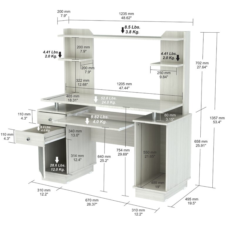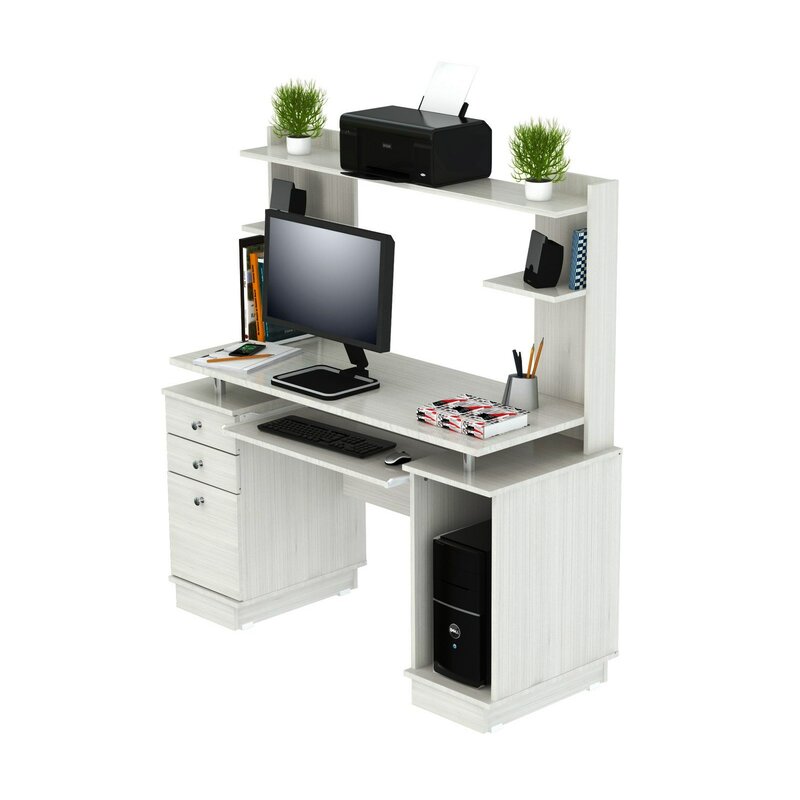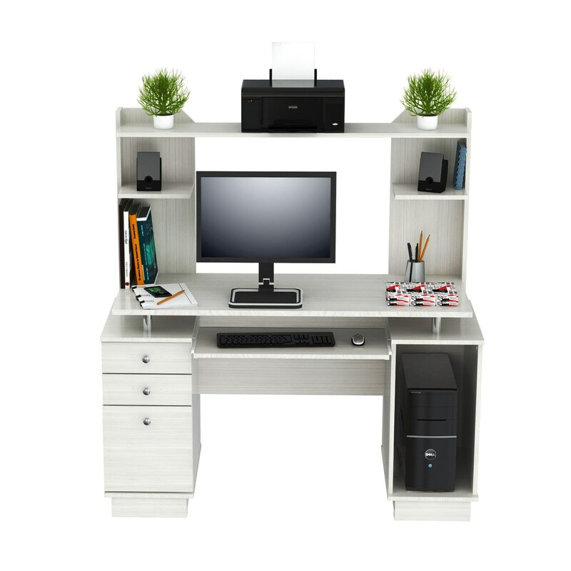 A classy and effortlessly stylish computer desk with a hutch is a versatile addition to your home decor. Its simple, yet elegant look merges well with any modern or contemporary home setting. Constructed from top-quality manufactured wood, this work center is durable and robust. Sporting a serene and calming finish, this work center brings a sense of immense tranquility into your room. The hardware items sport a lovely brushed nickel finish that enhances the overall appearance of this work center. You can easily install your keyboard in the pullout tray of the desk, allowing easy and simple handling and access. The topmost shelf easily holds your printer and other small essentials. You can display your speakers on the two small shelves on either side of the work center. The bottom shelf allows you to install your CPU. The desk accommodates your monitor or laptop, writing materials, books, magazines, and more. You can store your stationery, small knick-knacks, and notepads among others. This work center allows you to add some personalized items like picture frames, timepieces, table lamps, and attractive showpieces. Both, right and left-handed people can use this work center.