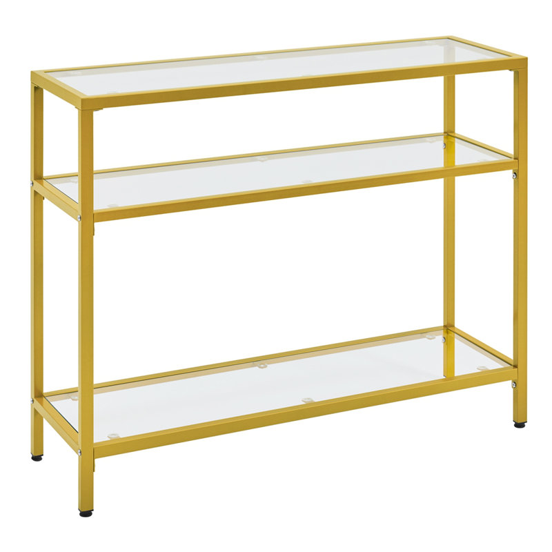 Modern style sleek metal frame multiplied by elegant tempered glass shelves, this well-rounded, chic console table can well integrate into various room decors and styles, and serve as an elegant addition