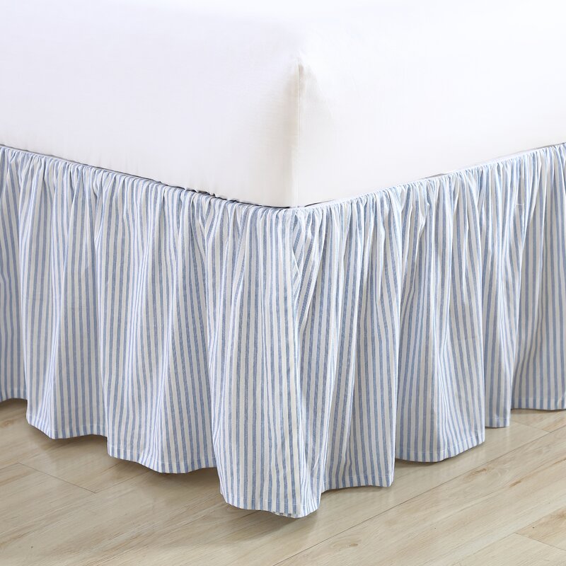The classic ticking stripe ruffled bed skirt from Laura Ashley is the perfect finishing touch for any bedroom decor. Constructed with quality cotton, this ruffled bed skirt features a blue pinstripe design, with a luxurious texture and lasting durability. Great for concealing bedposts and items stored under your bed, this stylish bed skirt is a perfect choice. Bedskirt is machine washable for easy care.