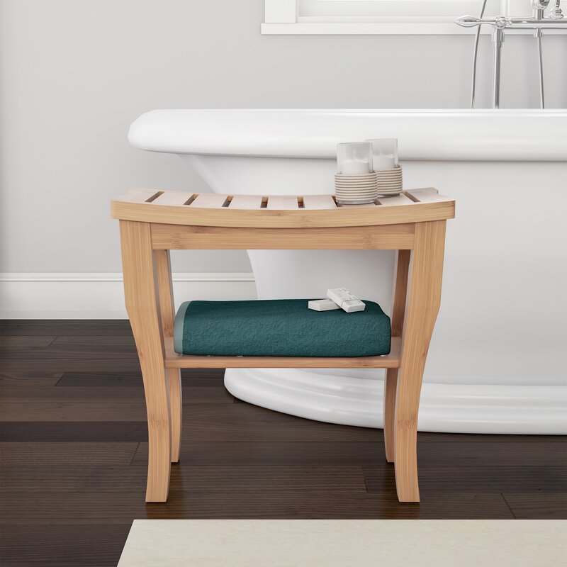 Create the perfect bath time setting with this bamboo shower bench. The sturdy seat has a concave shape for easy water flow to prevent build-up and a slatted design for even air circulation. The built-in storage shelf is great for keeping toiletries, towels, and other bath or shower accessories to keep them close at hand. This multi-functional bench is also great to use in the kitchen or bedroom, in dorms, or in small apartments.