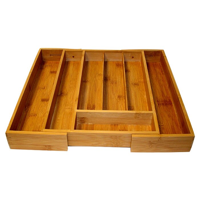The Adjustable Drawer Organizer keeps all your kitchen tools perfectly in one place. The cutlery tray is constructed from bamboo wood that promises high durability and excellent quality. The classic brown finish of the tray blends with most kitchen furniture and provides a stylish look. The Expandable Cutlery Tray by LCM Home Fashions, Inc. can be used to organize the different tools that keep cluttering the kitchen. The cutlery tray expands and fits most drawers. The tray is divided into multiple compartments to provide storage for tools and utensils of different sizes and shapes. The versatile tray is easy to care for and can be hand washed with a damp cloth to keep it clean.
