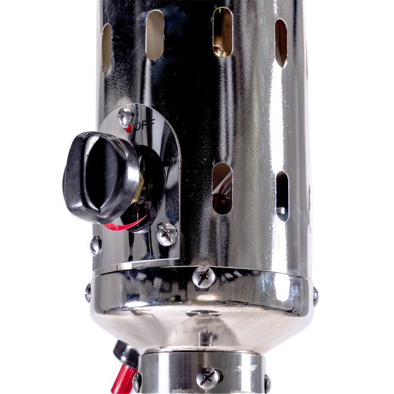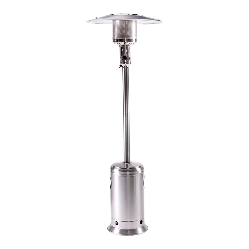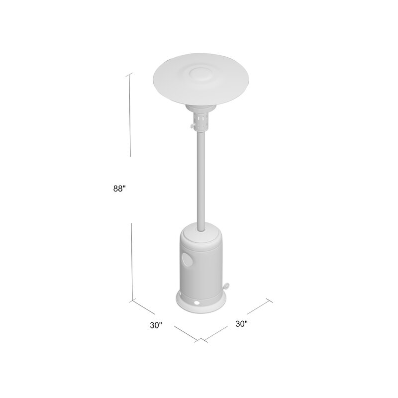 47,000 BTUs Powder coating finish provides an antique look. This powerful heater let’s you enjoy your outdoor space even during colder months, Piezoelectric ignition. Safety auto shut-off tilt valve. Uses standard 20 lbs. propane tank (not included). Wheel assembly included.