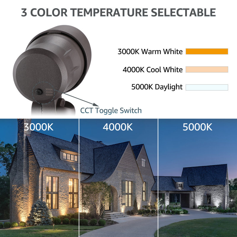 This light has three color temperatures for you to choose, 3000K/400K/5000K, you can choose different color temperature with different scenes as needed, such as house exterior, courtyard, garage and other outdoor places.