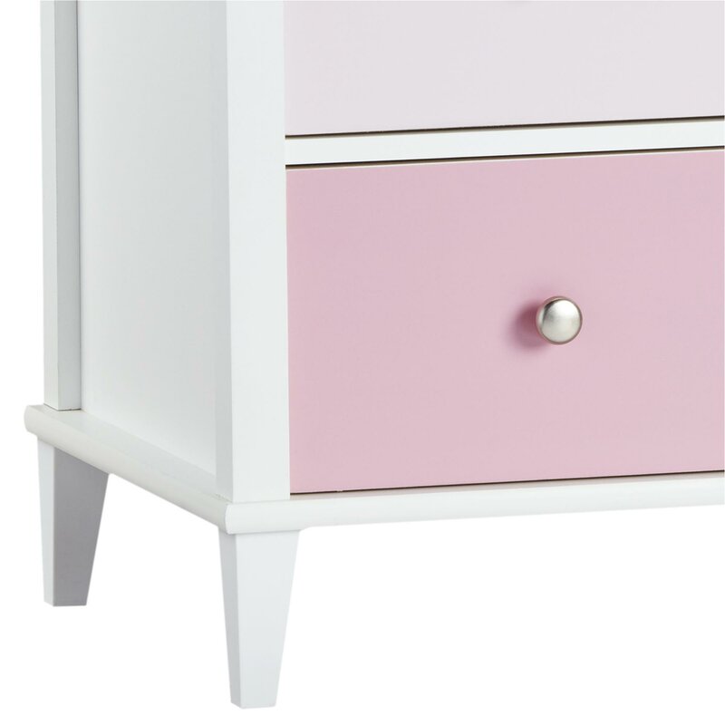 Made of laminated particleboard, the fun ombre style drawer fronts with the classic chassis give the kids’ dresser an updated look.