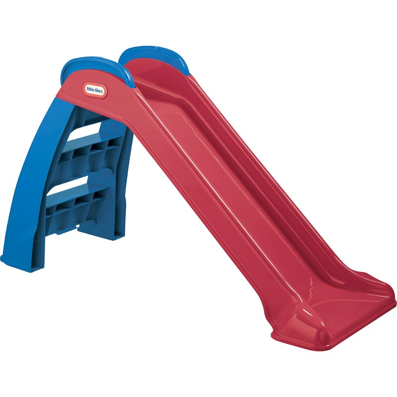 Watch in delight as your little ones enjoy their first slide with the little tike’s first slide. The construction from high-quality plastic makes it strong and durable. The bright and vibrant red and blue colors instantly liven up your backyard and hold your kids’ attention for a long. This weatherproof slide can be used all through the year in any climatic condition. Thanks to its water-resistant properties, this slide can be placed near your pool or on the beach. Being non-toxic, this slide is perfectly safe for your kids. The ladder helps your children get on to the top by holding on to the sides. You can fold and stow away this first slide from little tikes after use. Product may vary slightly due to production update. Different versions of this product can be shipped, some have blue handles and others do not.