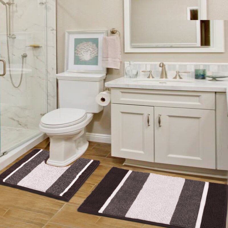 Multiple Options: 7 neutral colors are available with this rectangle striped pattern, rug measures 20″ x 32″ & 20″ x 20″, chenille pile height: 1.2 inches. Must add a welcome layer of comfort to your bathroom floor.