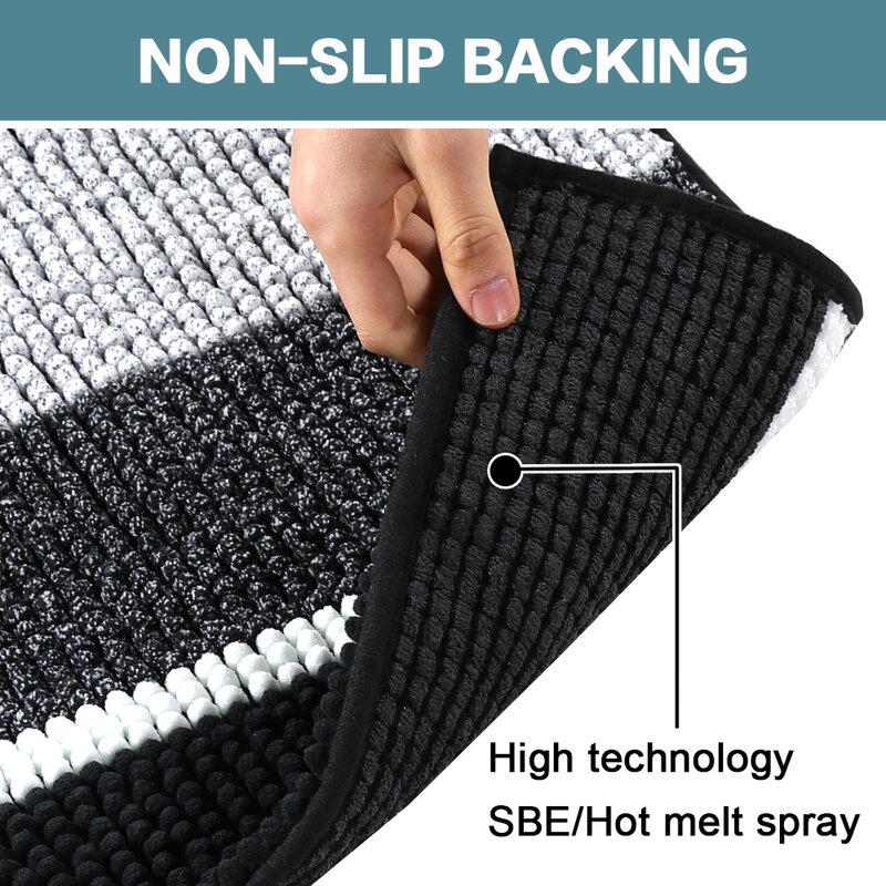 Super soft and fluffy: The chenille fabric microfiber bathroom rug features extra thick quality, it is designed to quickly absorb water, keeping your bathroom floors dry and clear, with no mildew or odor from this rug.