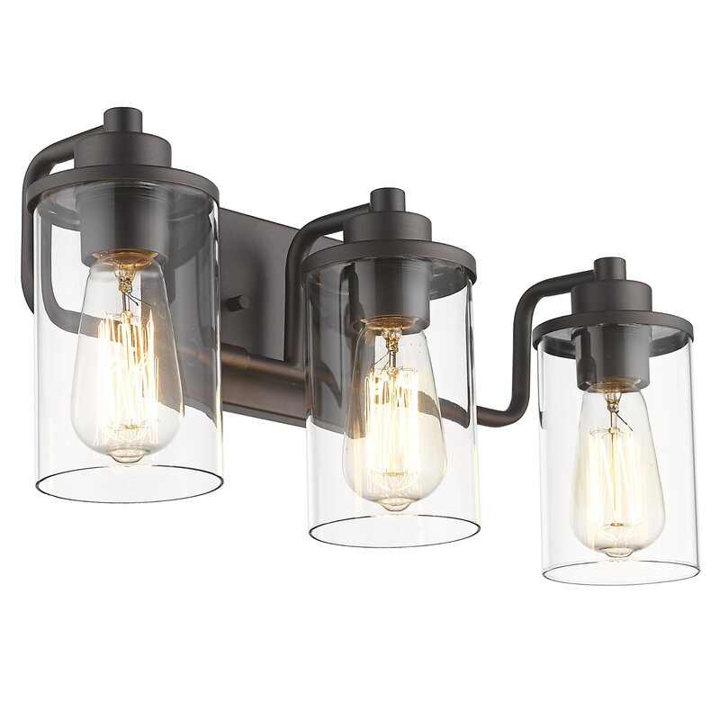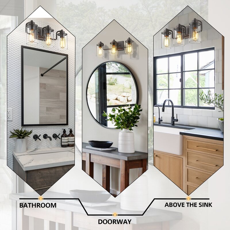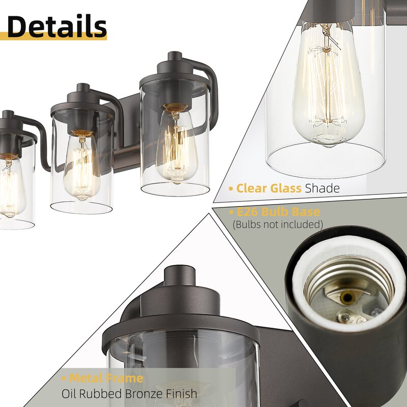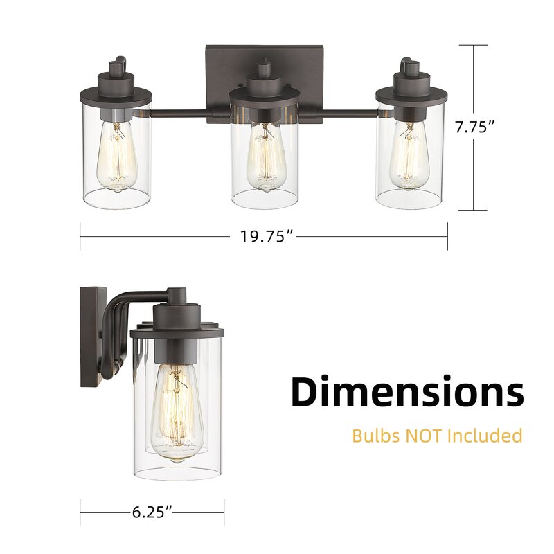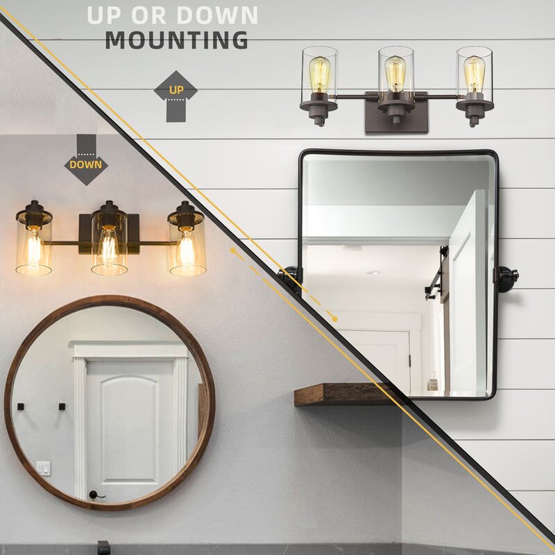 This vanity light is a built-in sturdy metal lamp body with an oil-rubbed bronze finish and clear glass shades, the breezy silhouette in a metallic finish creates a more exquisite and luxurious feeling for your home lighting. It’s supported by the metal rectangular backplate with horizontal support of arching arms. The seeded glass cover diffuses the light (bulbs are not included) onto your mirror. This fixture can be installed upward and downward, which is a perfect match for your bathroom, mirror cabinets,vanity set, etc.