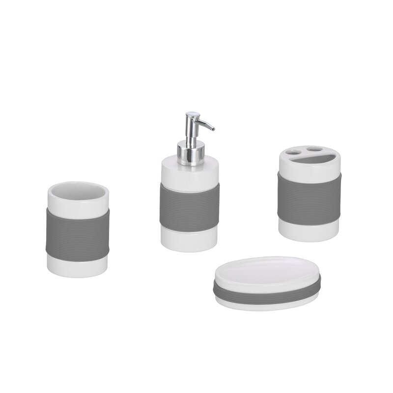 Your bathroom accessories work hard to keep you looking your best, so why not return the favor and use a set like this to give them the perfect on-trend home? Perfect for a contemporary bathroom, this four-piece set is crafted from white ceramic with rubber grips. Including a soap dish, dispenser, toothbrush holder, and tumbler, this set includes everything you need to refresh your bathroom’s look. And since it’s water- and mildew-resistant, it’s ready to live in your bathroom!
