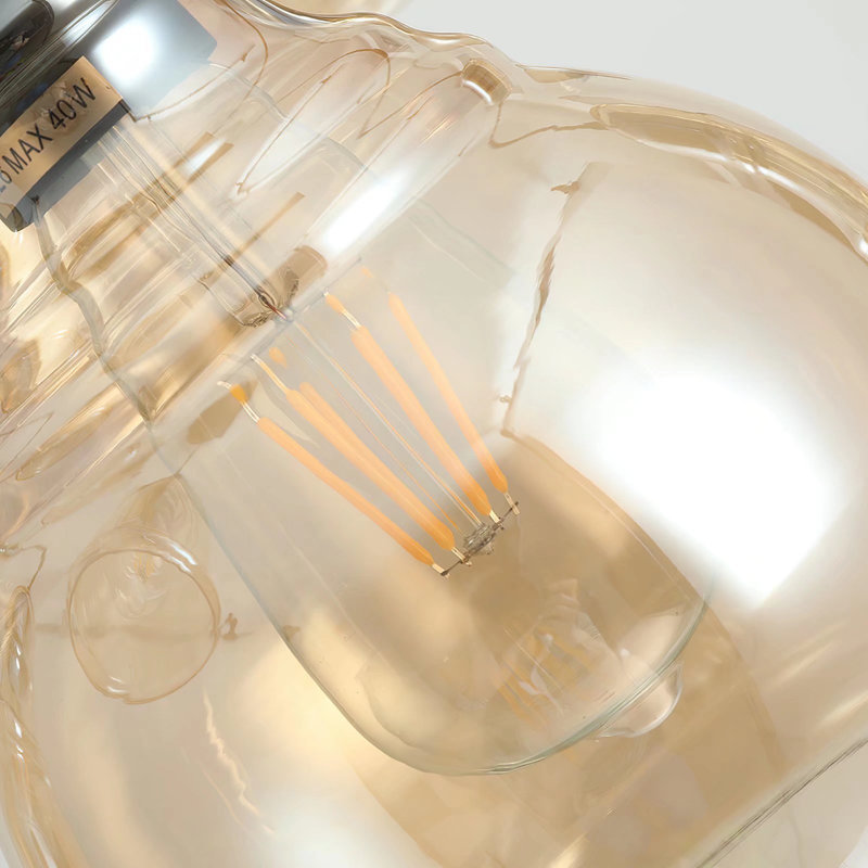 This is a very unique chandelier!Antique black finish. the cognac color lampshade blends so well with any decor. the glass has a slight iridescent tint to it, kind of like an amber tone, but is stunning and doesnt give off that yellow glow if you get clear bulbs, the light that’s cast is verrrry warm. You can adjust the length of the pendants to whatever youd like, but they hang beautifully no matter what, If you like soft, incandescent lighting so this pendant light is perfect for you. Its simple, elegant and stylish, it will really add a modern touch to your dinning room or kitchen, etc.(INSTALLATION VIDEO LINK: https://youtu.be/_Dxan-VPYVc)
