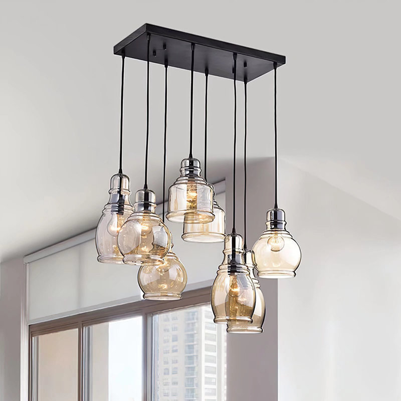 Unique Design: Farmhouse light fixture designed with Cognac Glass Brandy wine bottles lampshade, Its high quality, timeless design and unique iridescent globes create a perfect look. Each pendant has a really nice cognac color and the glass has a nice shine, adding atmosphere and charm in any space
