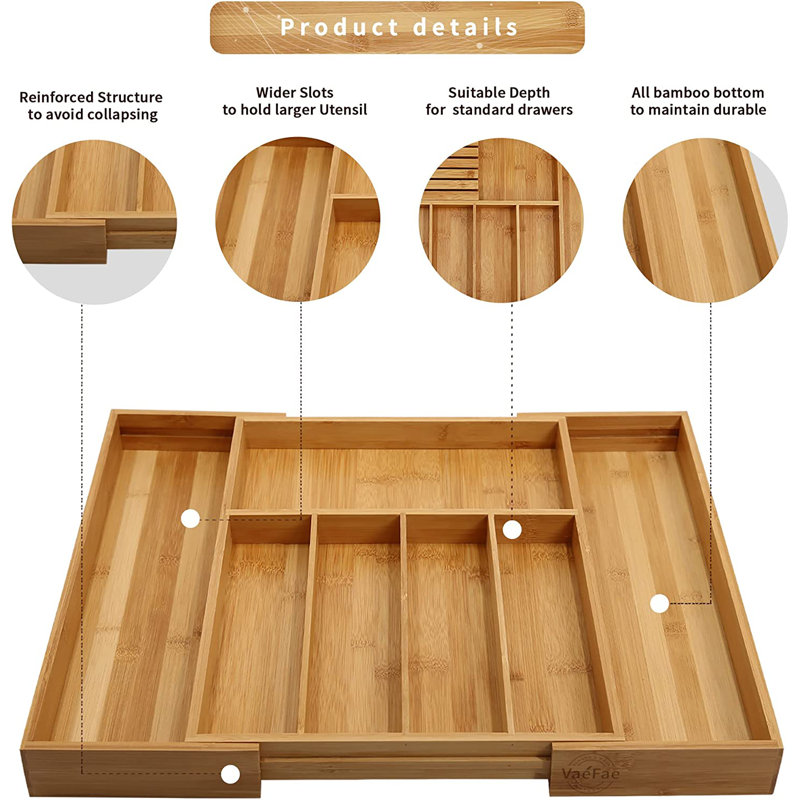 Natural bamboo material: We constructed our kitchen bamboo silverware drawer organizer with 100% moso bamboo which is earth-friendly, elegant, and durable to last for years.