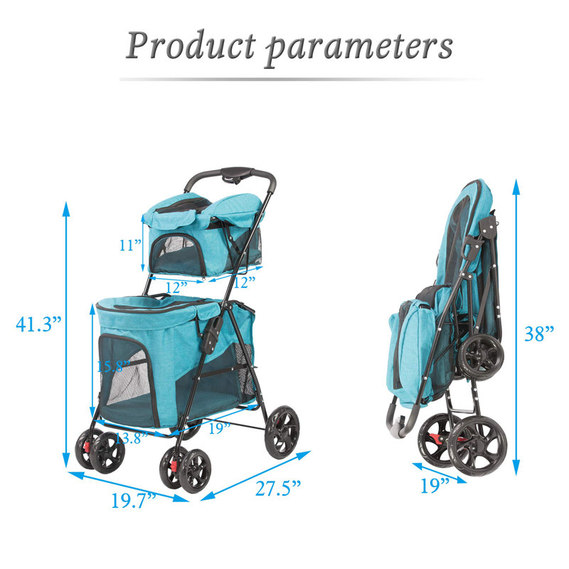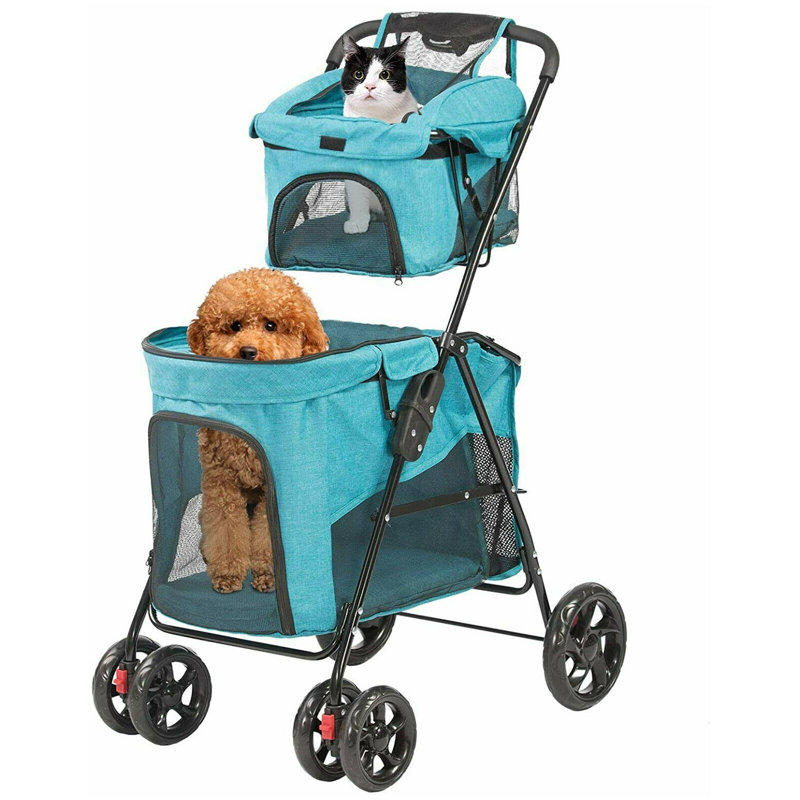 Double Deck Stroller: A small and one big cage carriage. Not only designed for small dogs, cats, puppies, and kittens, but can be used for other small-sized animals such as bunny rabbits.