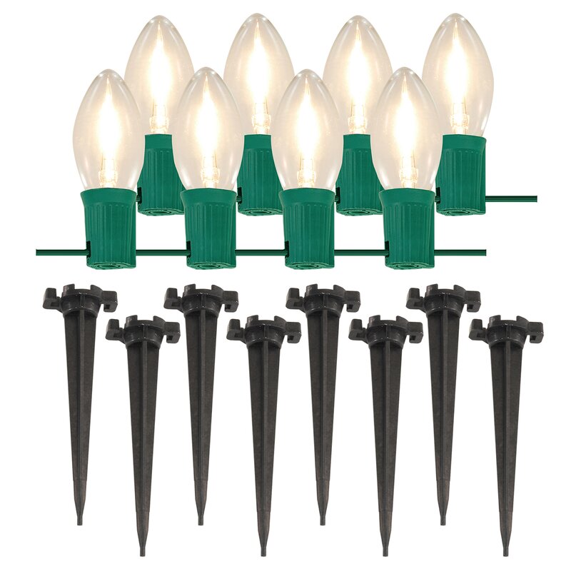 Electric LED pathway lights will bring a magnificent ambiance to your outdoor decor. These weather-resistant string lights can be enjoyed throughout the entire season. Simply stretch the 192″ electric cord and position each of the LED light bulbs in each anchor stake. The illuminating glow adds perfect accent lighting to driveways, walkways, sidewalks, or entryways.