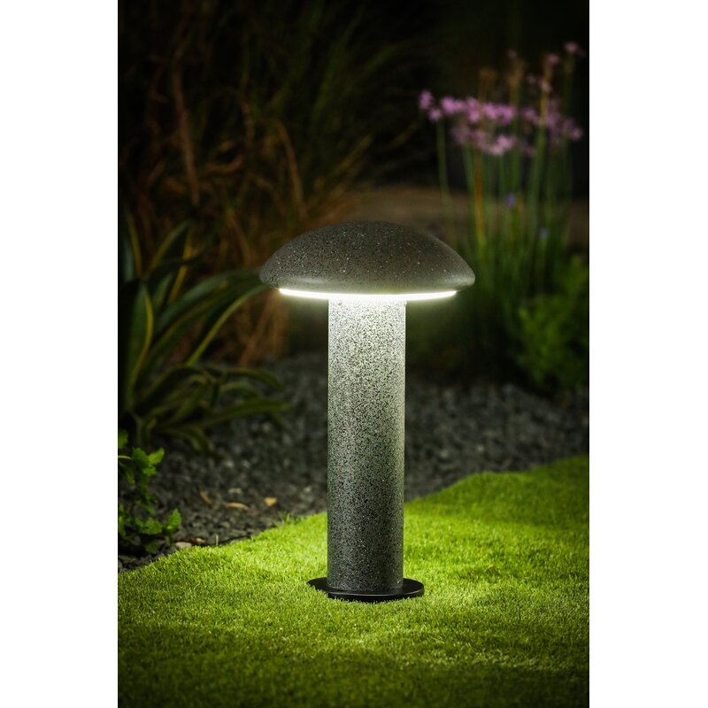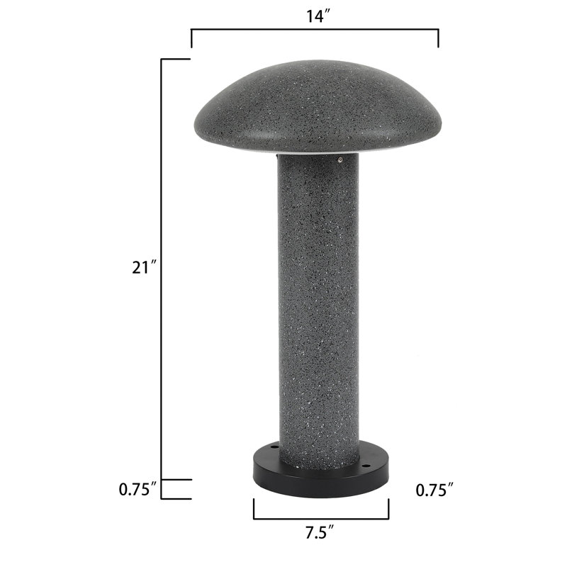 Bring a note of modern glamour to your outdoor setting with the mushroom top column bollard light. This sleek and modern path light is made of cement and boasts a sophisticated gray speckled finish that will give your home that look you’ve been missing. The solar bollard light is light underneath the circular curved top and will illuminate your outdoor spaces. The bollard light will brighten your garden and shrubbery to look very attractive at night. The bollard light will also light up walkways, pathways or driveways, making them safer and more beautiful. Made of cement in a gray speckled finish.