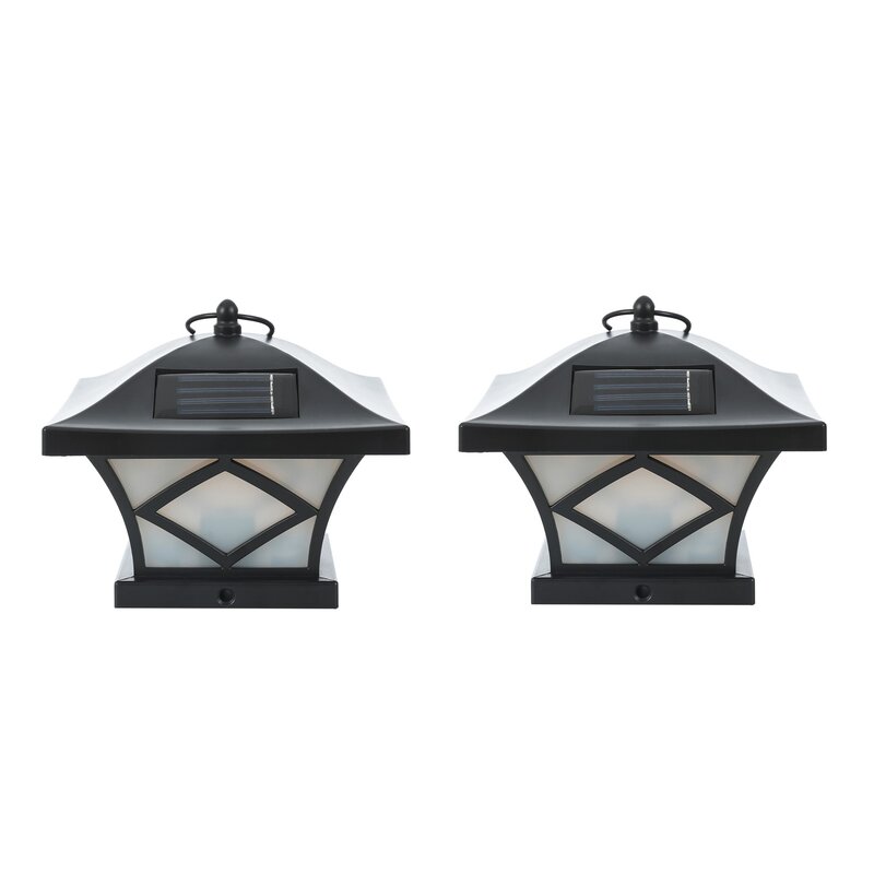 Post cap lights are a great way to spruce up your deck and landscape. This set of two post caps are solar powered wireless lights that work best for 4×4 standard posts. These contemporary=style black and white solar post caps provide soft lighting to outdoor decks without the hassle of hooking up wiring or using electricity. The solar powered post cap lights include an on-off line switch, and when the post cap solar light is switched to “on”, it will automatically turn on at dusk after charging during the day. Made of strong plastic material, the post cap light will continue shining even in poor weather conditions on a full charge.