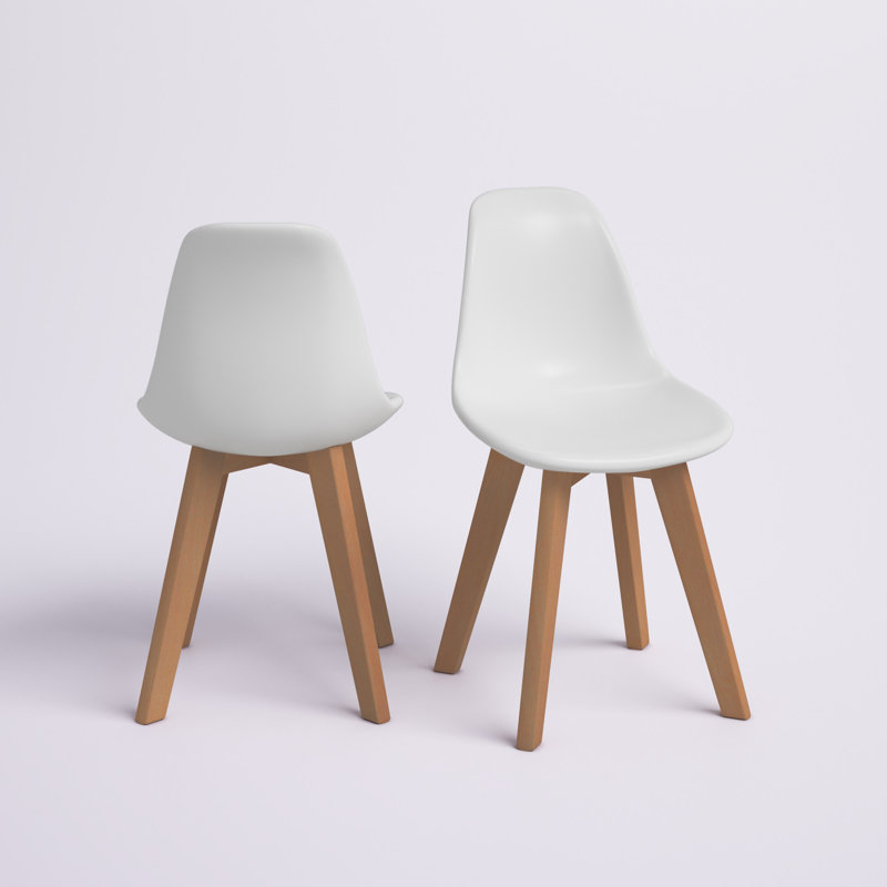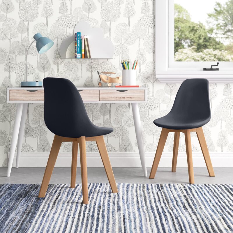 Create an art studio or craft area for your kiddo with these chairs. The seats are made from plastic and have an armless bucket-inspired silhouette that can be pulled right up the table to save on floor space. We love how the chairs are made from durable plastic because that means they are easy to clean. Four solid birches of tapered and splayed legs support the chairs to create a mid-century-inspired silhouette. The seats measure 11.75″ tall, making them perfect for your little ones. These chairs arrive in sets of two.