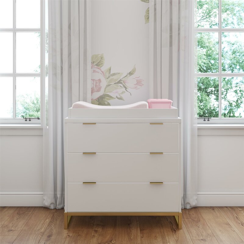 With the addition of the Weisberg Changing Table Topper, you can easily transform your 3-drawer dresser into a convenient changing table. Crafted with both style and safety in mind, it features a durable engineered wood construction in a neutral finish with raised edges to help keep your little one in place. Plus, you can even combine the dresser topper with the rest of the collection to create a cozy, timeless designed nursery that will grow alongside your child for years to come. The collection includes a crib that can easily be converted to a daybed, a toddler bed with guardrails, and finally a full-size bed (all sold separately and individually).