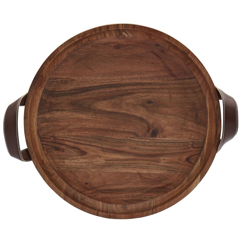 Love this tray. Nice change from square tray. Love the leather handles as well.Arrived in perfect condition.