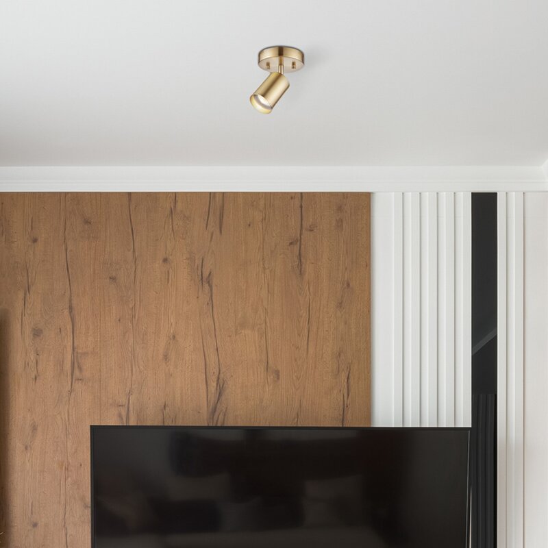 The Cianca Collection offers a variety of styles that keep elegance in mind. With one cylindrical track head that juts from a matte brass canopy, the Cianca 1-Light Track Spotlight Ceiling Light becomes the perfect way to illuminate your home. The matte brass color accents any decor while the petite but effective profile is great for placement – perfect for adding a little glam to your bedroom, living room, kitchen, hallway, or den.