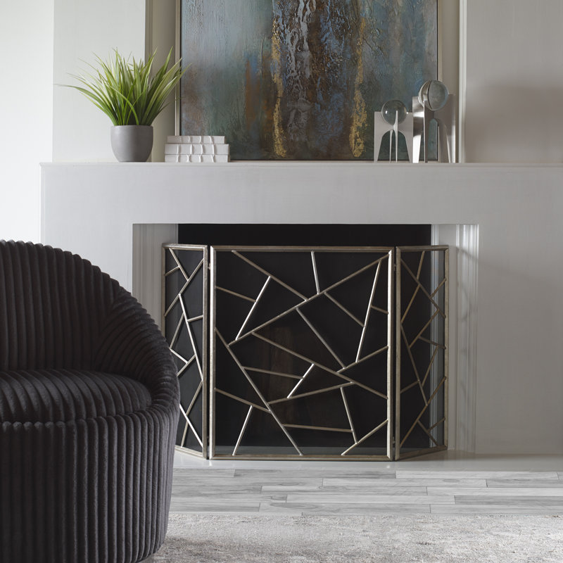 We love the heat and natural light of a fire, but we’d also love it if the fire stayed inside the fireplace. Thankfully, fireplace screens like this one are here to keep our ensembles safe for leaping embers and snapping coals. Crafted from iron with an antique silver leaf finish, this piece features a mesh screen accented by geometric touches for a modern accent in front of any fireplace. Measuring 30” H x 51” W x 1” D, this piece fits most fireplaces.