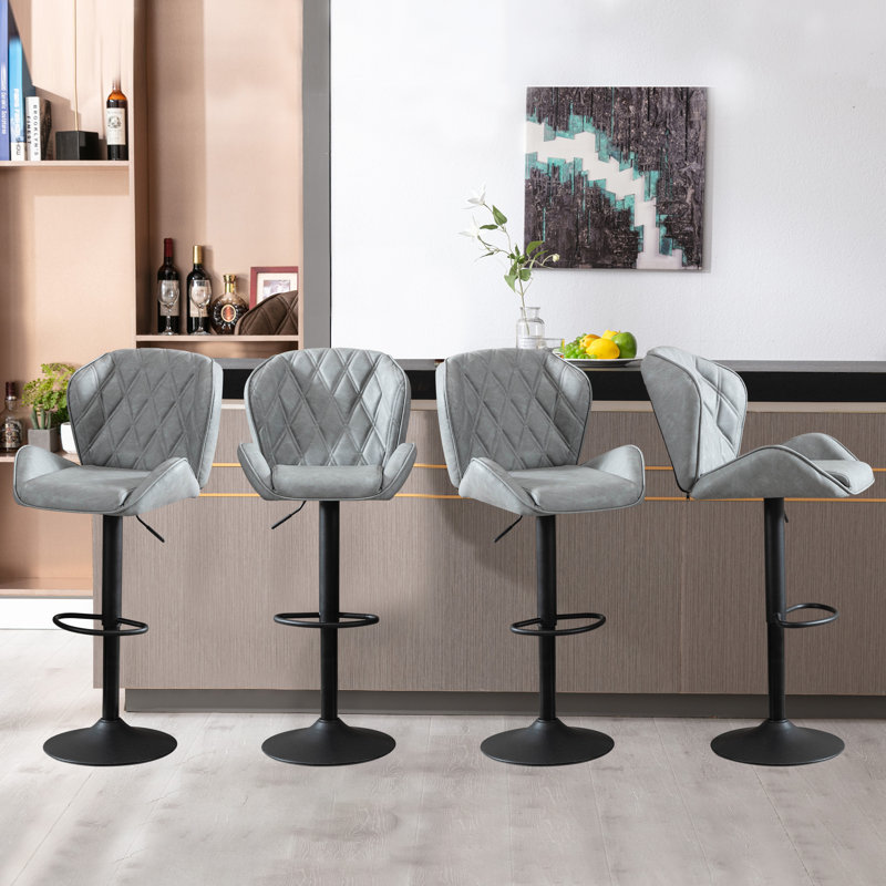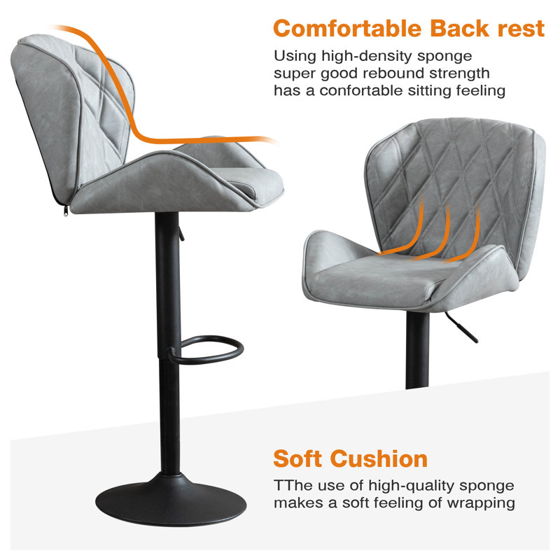 A sleek addition to the kitchen island or breakfast bar, this stool lends your space, an eye-catching style as it creates a place for your guests to kick back. Crafted from metal, it stands atop a pedestal-style base with adjustable height and swivel functionality, so you can find the perfect angle every time. A low-backed saddle seat wrapped in faux leather completes the look it offers you and your guests.