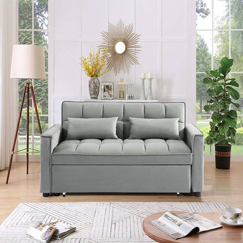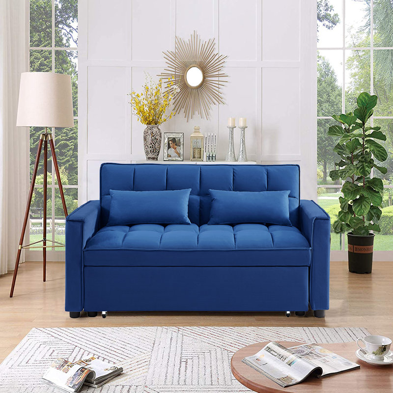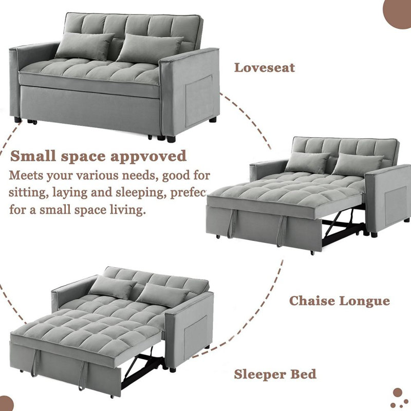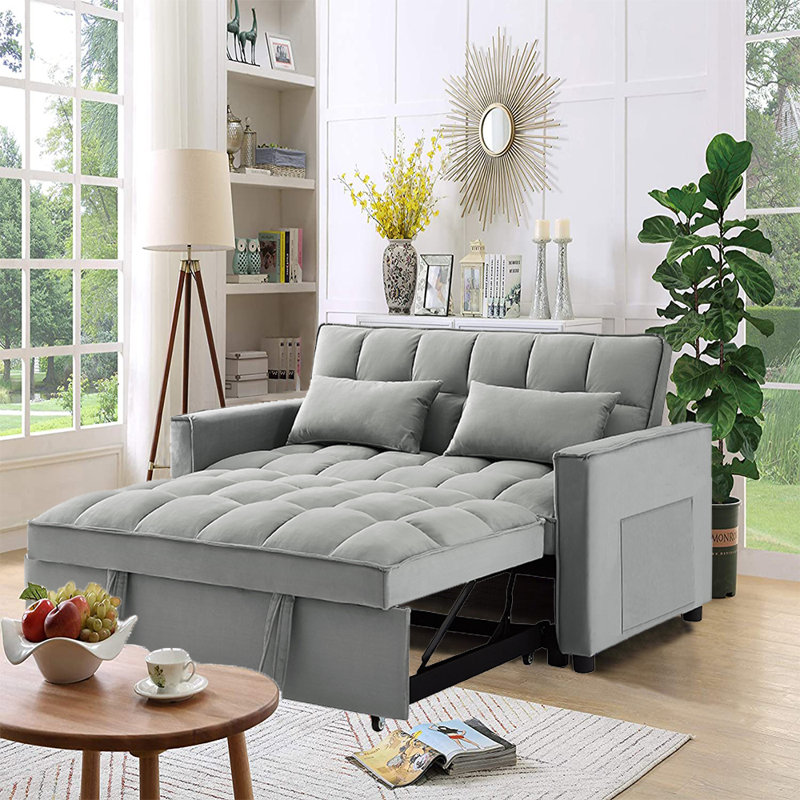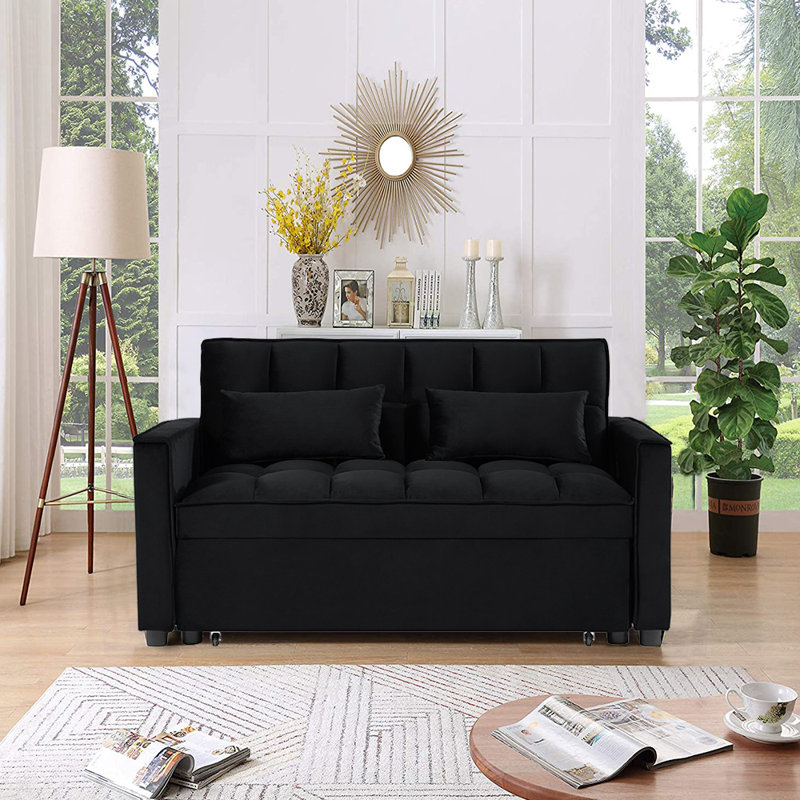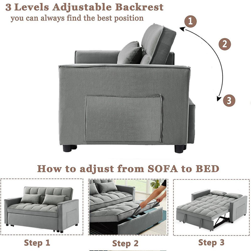 Modern design style, soft velvet fabric, beautiful colors, suitable for all places. Pull the included handle and it slides out on rollers, making the sofa easily convertible to a sleeper bed, twin size to accommodate your overnight guests. This convertible sofa will meet your every need. Suitable for a small sweet home, dorm room, apartment, or even an office, this inspired sofa will be the perfect addition to your living space.
