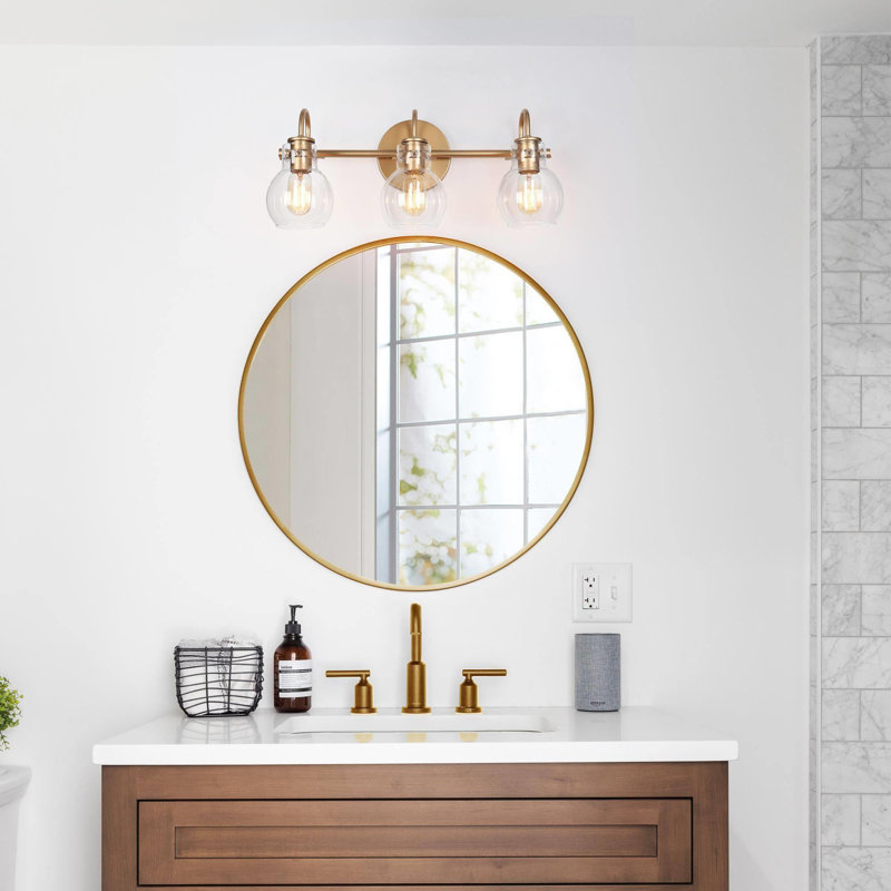 Furnish your master bath or powder room in a modern and glam style with this three-light vanity light. Crafted of metal, it features a round backplate and slim bar to create a sleek and chic look. A trio of gold dome-shaped shades supports Four bulbs up to 60w (not included) to cast an ambient glow as you tackle your morning and night routines. Install it with the light facing up or down in the bathroom to suit your tastes. You can install it above your large mirrors or between your double mirrors for covering more blind areas. No matter used as a wall sconce or vanity light, this light never fails to brighten up your paintings, mirrors, and other nooks in a bathroom, vanity, kitchen, foyer, living room, bedroom, study, basement, farmhouse, foyer, hallway, and so on.