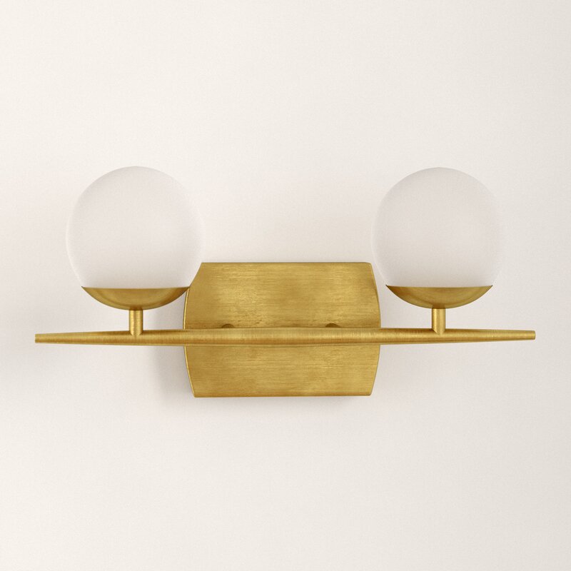 Give your morning routine a boost of brightness with this sleek 2-light vanity light. Perfect for damp locations, this steel and metal fixture features a square-shaped backplate in a neutral finish and a clean-lined arm for a touch of mid-century modern style. Two globed-shaped shades crafted from glasshouse 50W halogen bulbs (included) that aim ambient light up or down thanks to its reversible mounting feature. Place this piece in the master bath above the vanity, or in the guest room bathroom.